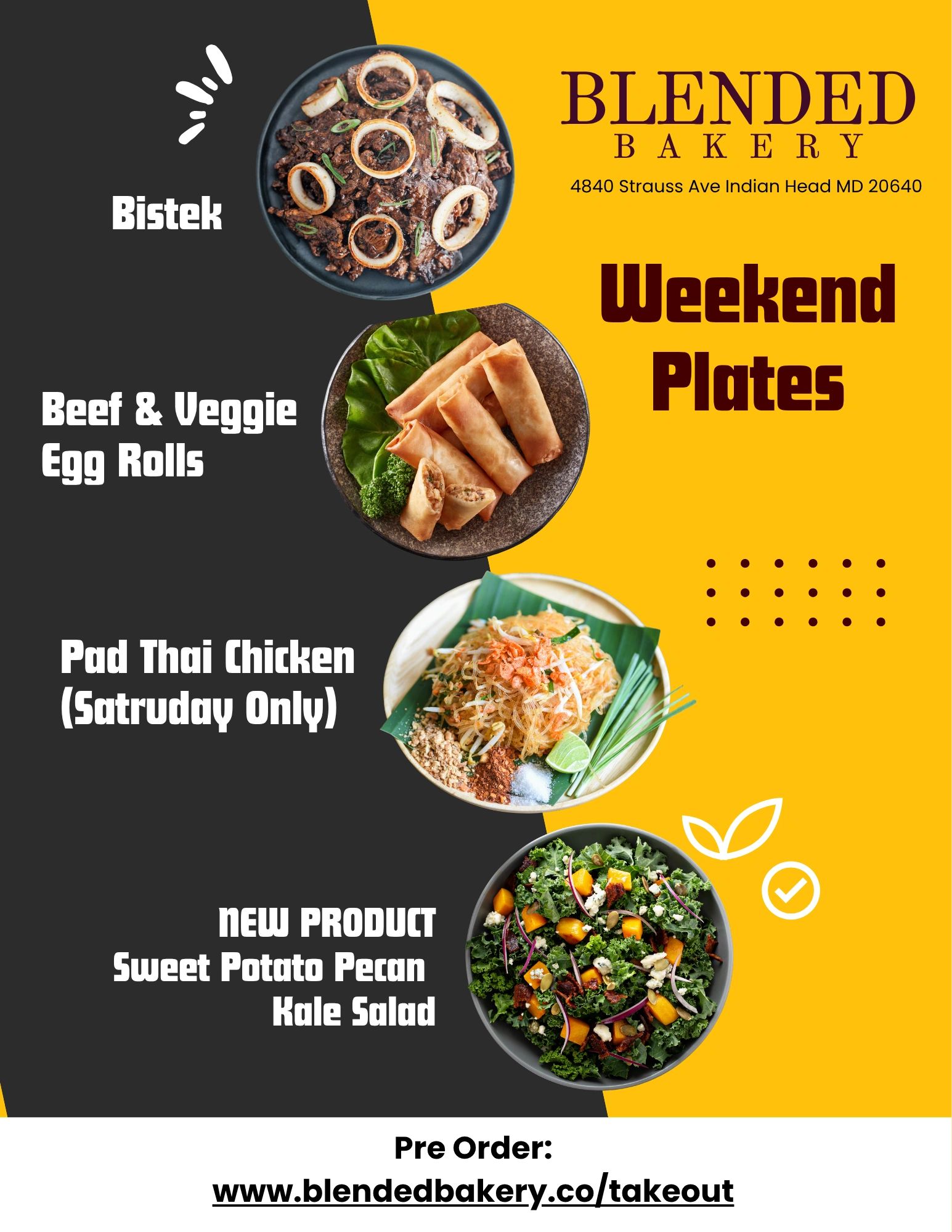 Online order for take out now available. Weekend plate ( FRI/SAT) menu is updated weekly. CLIck ON IMAGE TO PlACE ORDER.